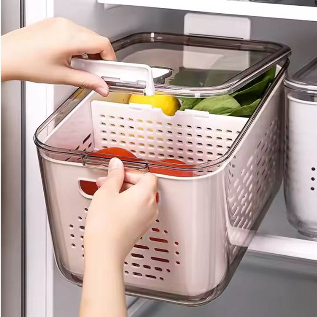 Katalia Organizador Nevera Frigorífico Cocina Multifuncional con Escurridor y Tapa – Material Resistente BPA-Free, Transparente y Gris
